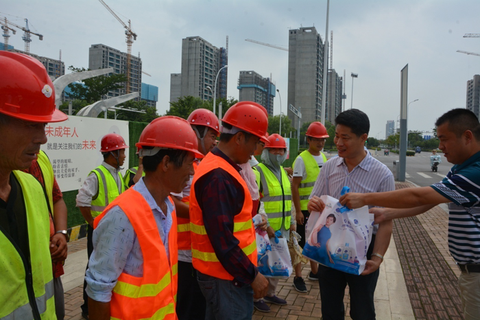 7月26日上午,開發(fā)公司副總裁劉建華帶隊慰問市政工程項目現(xiàn)場工人,給他們送去毛巾、香皂、洗發(fā)水等防暑降溫用品,感謝他們對園區(qū)市政工程的建設(shè)作出的貢獻(xiàn)。