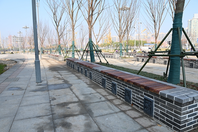 此次針對蘇州公園東北角處進(jìn)行重新栽植18株20CM的彩葉樹種的櫸樹和日本矮麥冬進(jìn)行栽植,同時(shí)為迎合蘇州街西入口整體景觀效果相協(xié)調(diào),增加更具“蘇式”韻味景觀長條形式的坐凳滿足周圍居民生活休閑。