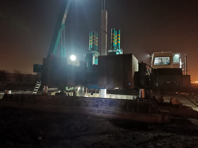 項(xiàng)目于2021年12月正式開(kāi)工建設(shè),總樁長(zhǎng)約4.7萬(wàn)米。樁基工程是整個(gè)項(xiàng)目起步的關(guān)鍵工程,項(xiàng)目各參建單位緊密配合,面對(duì)時(shí)間緊、任務(wù)重、氣溫低、管控嚴(yán)等重重困難,施工不分晝夜,雨天依然堅(jiān)持施工,最終確保了進(jìn)度計(jì)劃的實(shí)現(xiàn)。