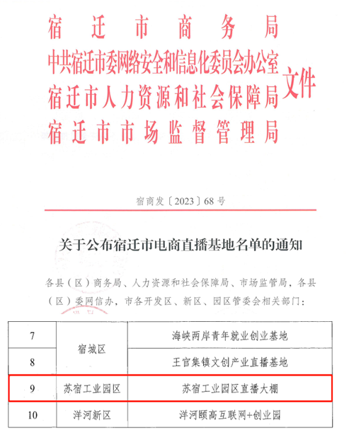 近日,由宿遷市商務(wù)局組織,各縣區(qū)參與的首批“宿遷市電商直播基地”評選結(jié)果揭曉,蘇宿電商園直播大棚成功入選首批“宿遷市電商直播基地”。